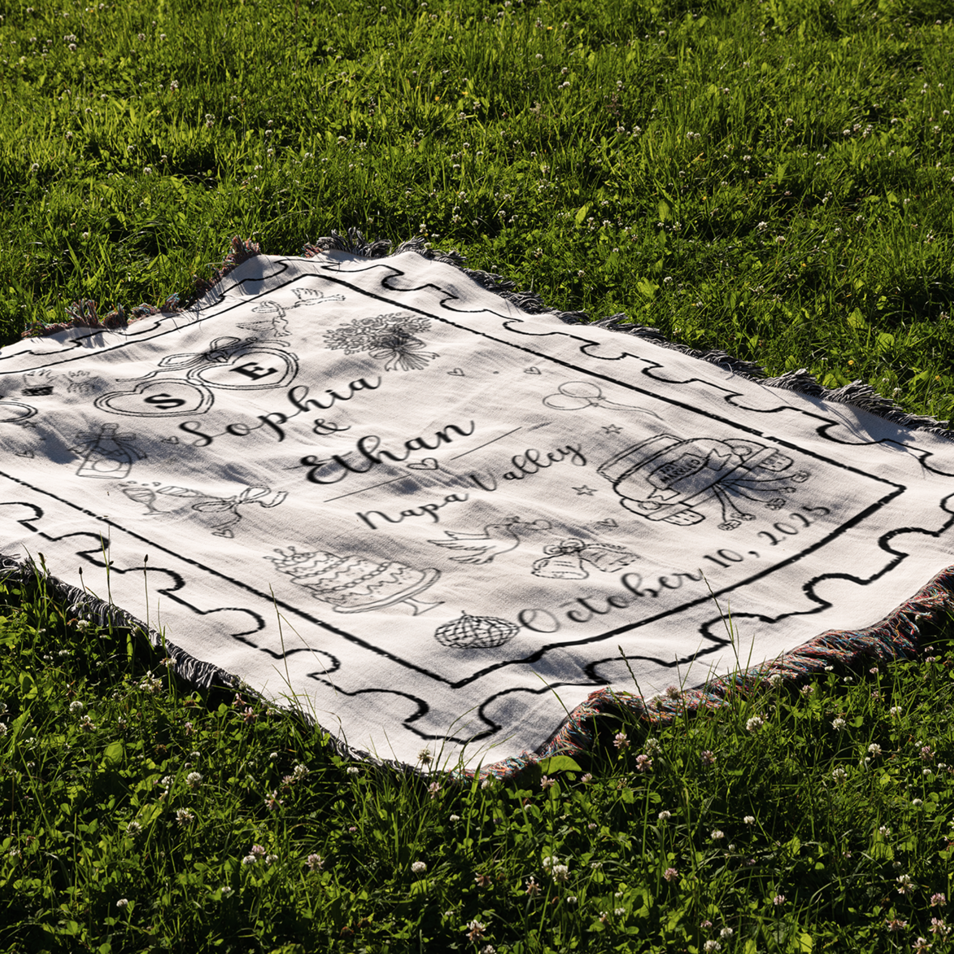 Personalized Wedding Blanket – Custom Names, Date & Location Woven Throw, Bridal Shower Anniversary Gift